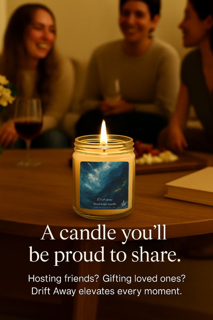 Bring the coastal breeze indoors. Our Drift Away candle transforms your living room into a haven of calm and connection—perfect for winding down or setting the stage for meaningful moments.